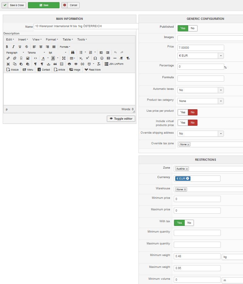 -- Error-message(debug-mod must be tuned on) -- : Delivery conditions do not apply to country of destination