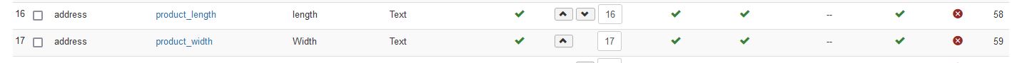 2. The two fields of your screenshot are of the table "address" and thus should appear when you create / edit an address. However, seeing their name, I suppose you want to make them of the table "item" so that the customer can enter a width/length when adding the products to the cart. So you'll have to delete them and recreate them with the correct table.