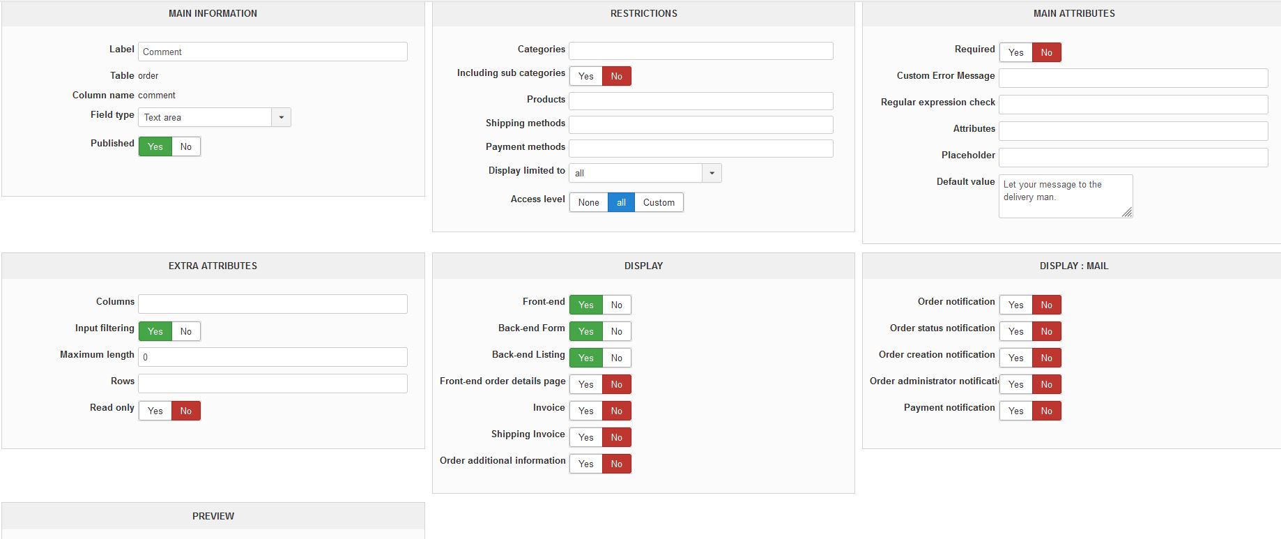 1. Could you provide a screenshot of the settings of that "comment" custom field ?