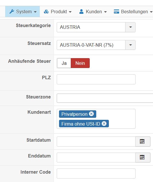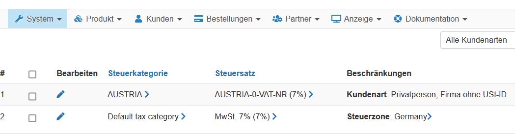 - create a new tax rule with that new tax zone selected, the client type set to "companies without a VAT number" and the tax category setting set to "default tax category".