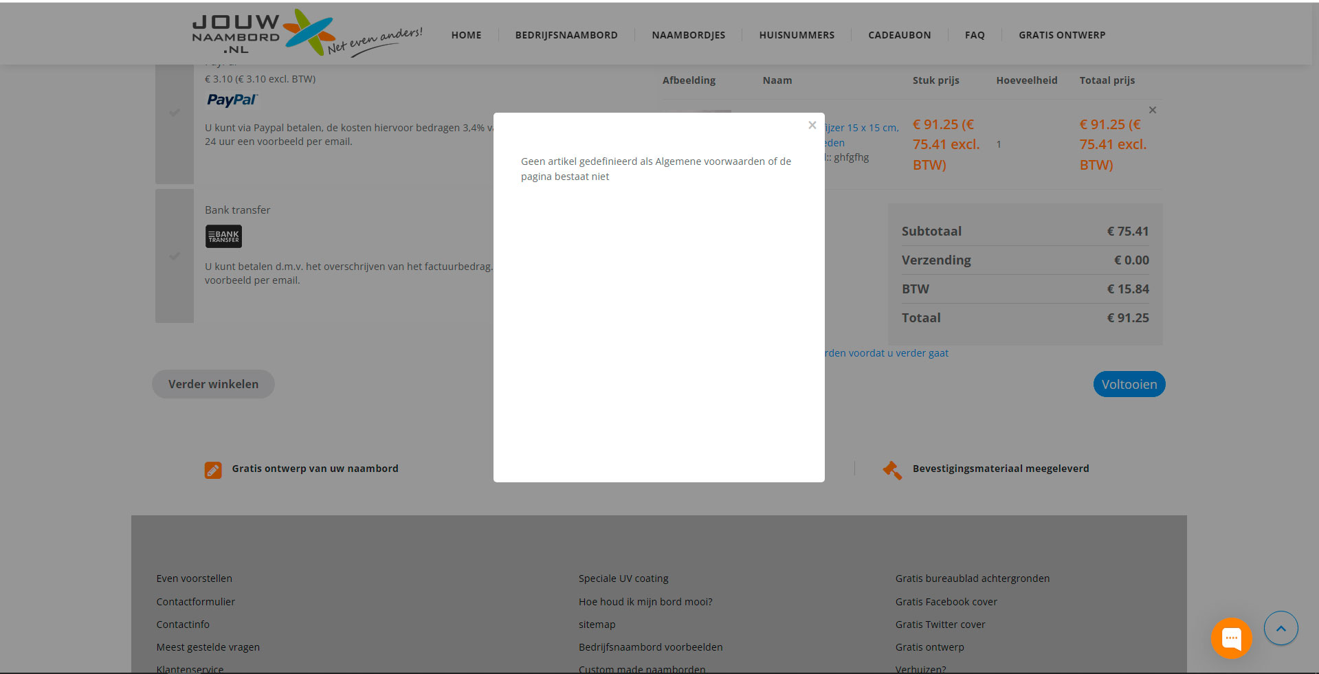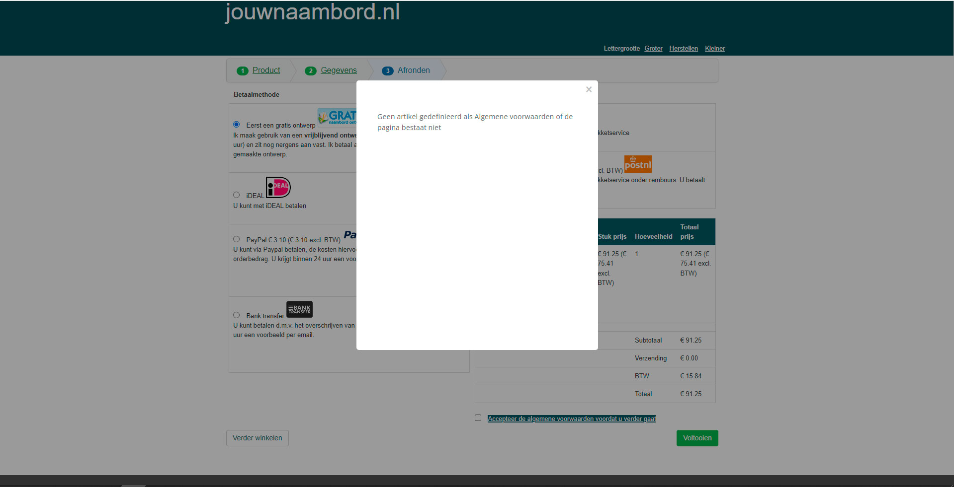 On the checkout the terms and conditions show a blank pop-up with the message: "no article defined or the page doesn't exist". I thought it could be related to the template, but when changing it to Beez3 I get the same error.