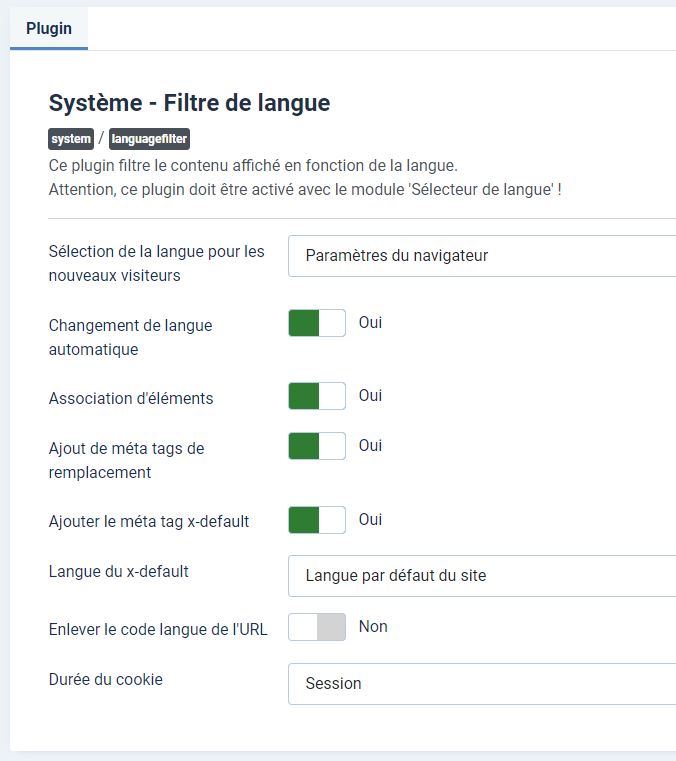 Sachant que pour les essais j'ai modifié aussi le plugin Système - SEF en indiquant