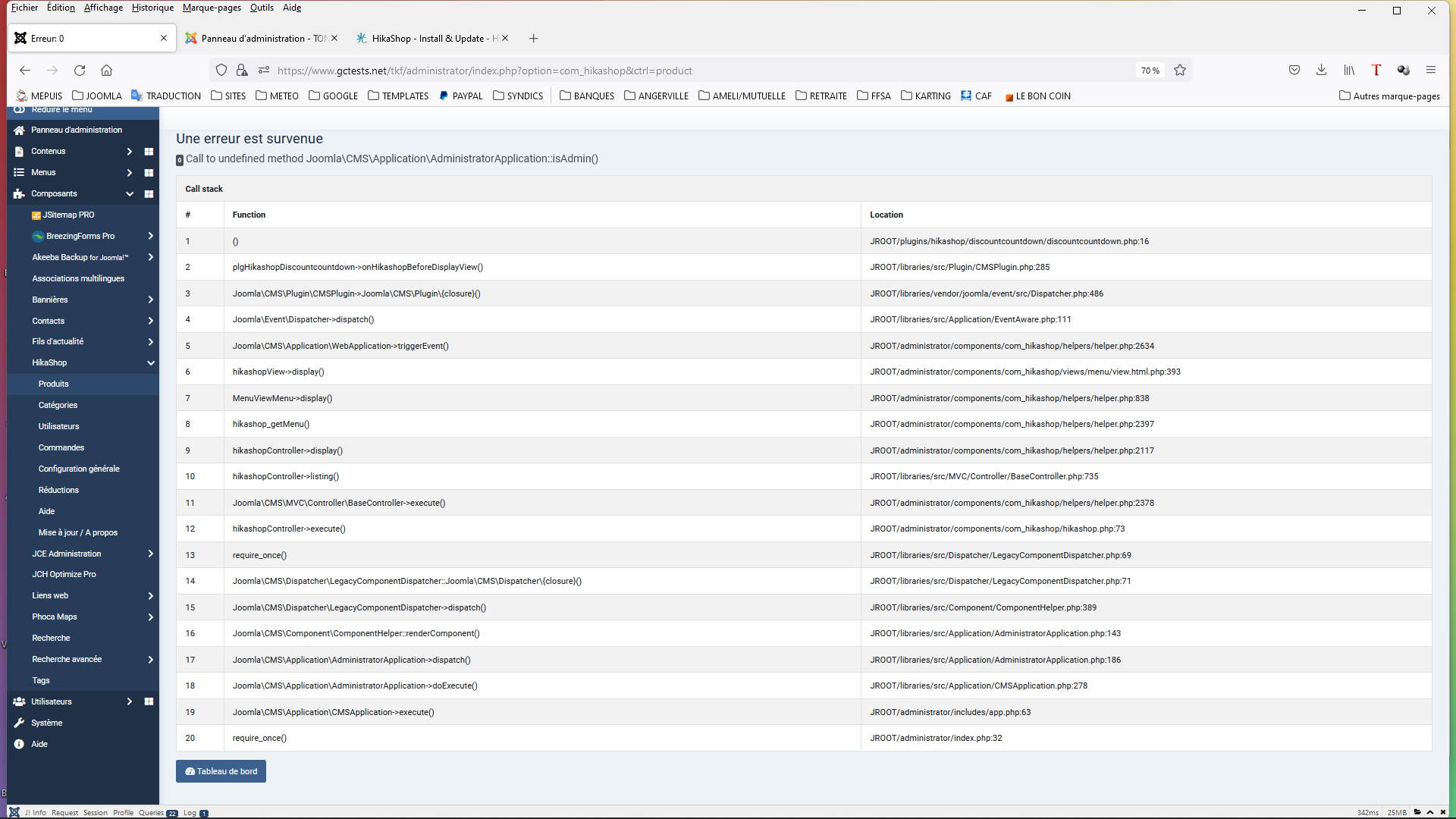 Après la mise à jour vers Joomla 4, comme j'ai des erreurs lors de l’ouverture de l'administration d'Hikashop, j'ai activé le débogage et mis le rapport d'erreur au maximum.