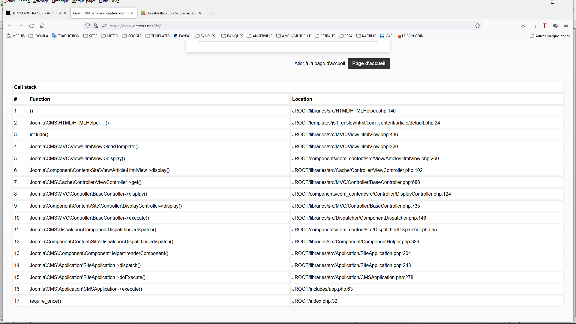 Cependant j'ai une erreur sur la page d’accueil du site. Voir la pièce jointe.