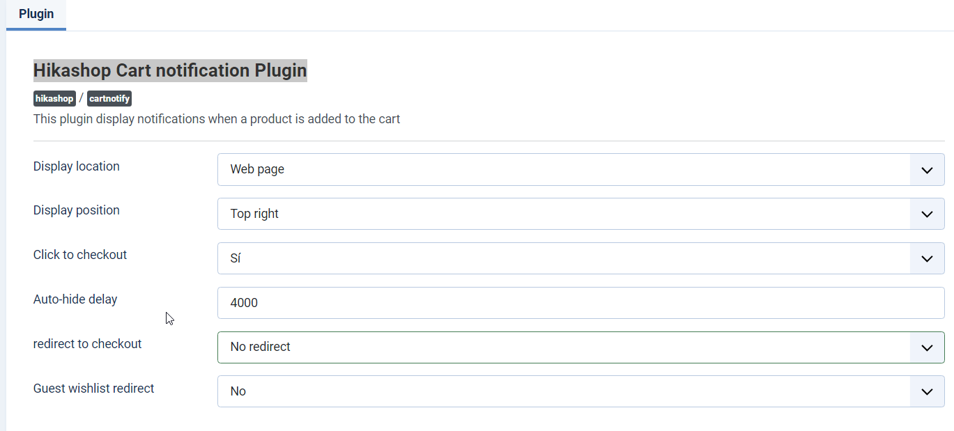 Hikashop Cart notification Plugin