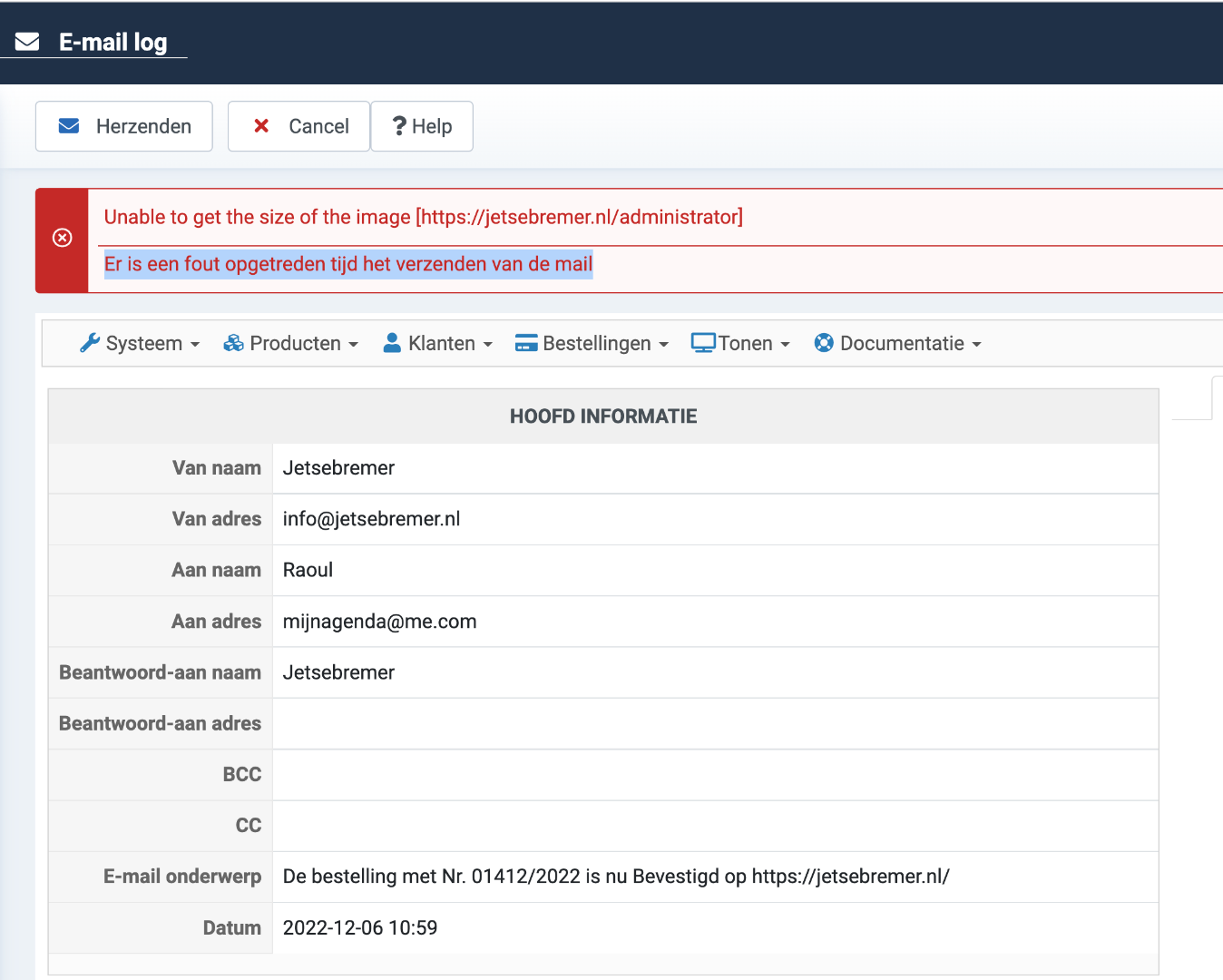 Er is een fout opgetreden tijd het verzenden van de mail