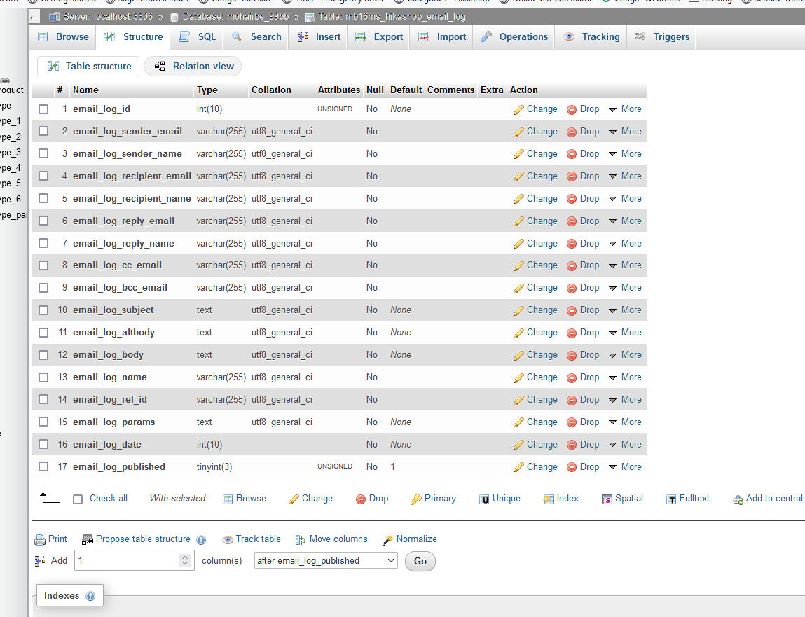Can you provide a screenshot of the structure of the email_log table in your PHPMyAdmin ?