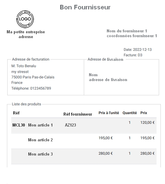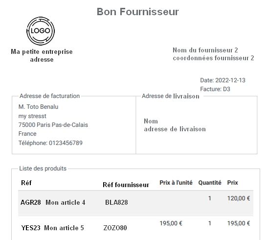 De plus le bon de livraison reprend l'ensemble des informations de la commande sans faire de tri entre les fournisseurs.