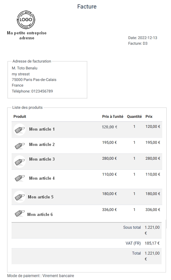 Malheureusement les coordonnées du client n'y apparaissent pas.