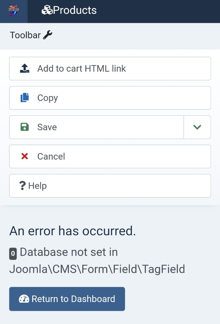 Error 0 "Database not set in Joomla\CMS\Form\Field\TagField"