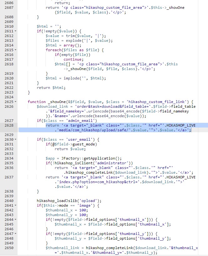 in the file administrator/com_hikashop/com_hikashop/classes/field.php