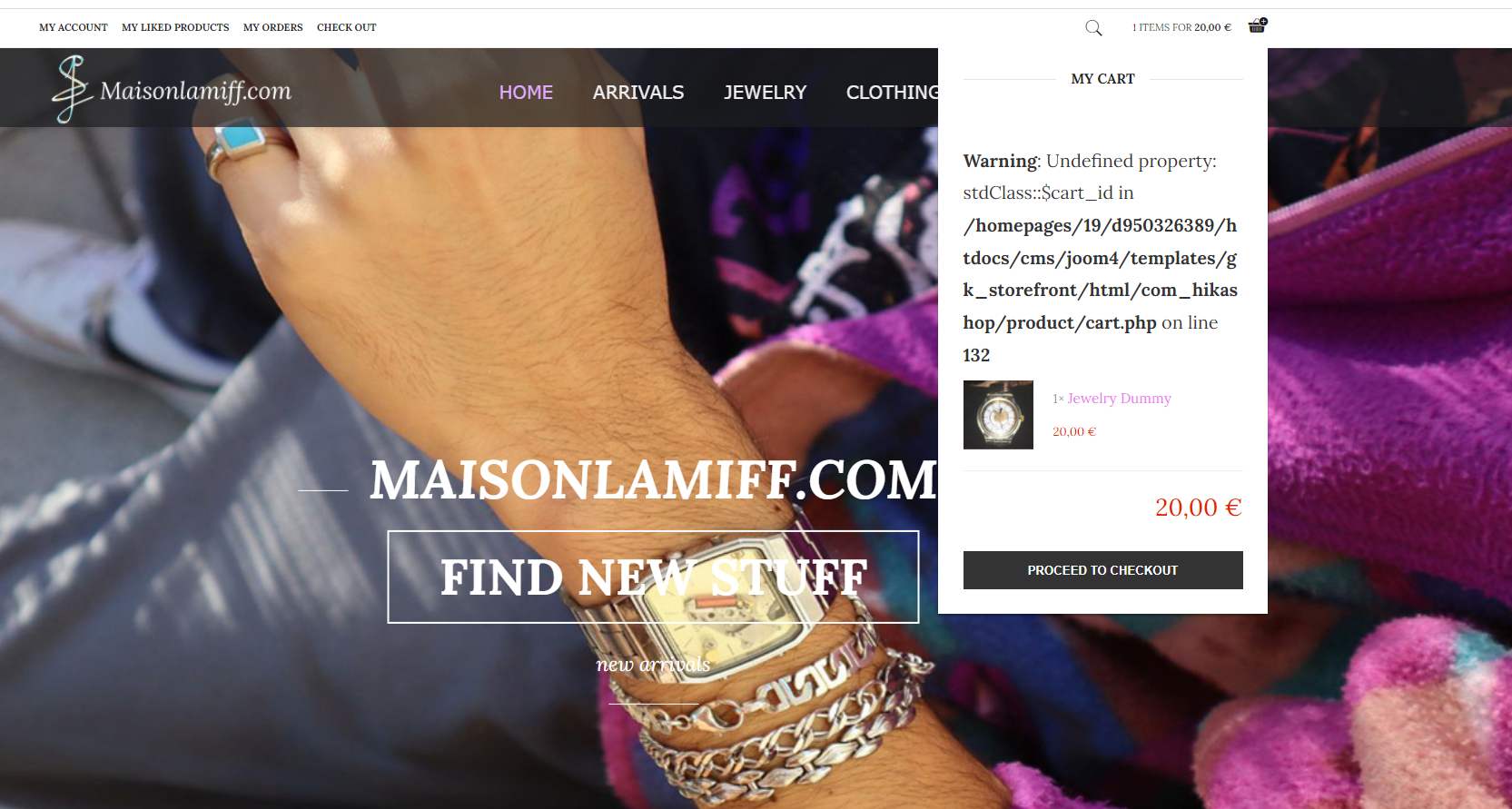 -- Error-message(debug-mod must be tuned on) -- : Warning: Undefined property: stdClass::$cart_id in /homepages/19/d950326389/htdocs/cms/joom4/templates/gk_storefront/html/com_hikashop/product/cart.php on line 132