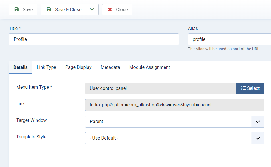 But it generates a 404 error, and the alias on your screenshot is "profile". That would suggest that another extension comes and changes the URL to something else for some reason.