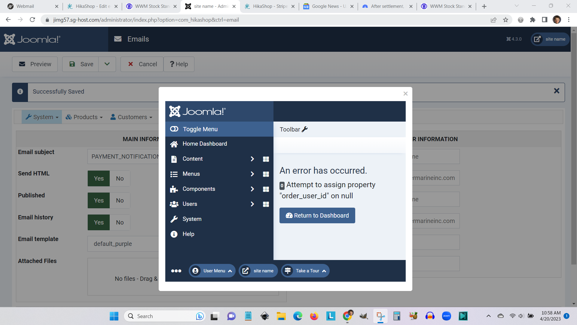 7. Regarding the error in the preview, please activate the "debug" setting of the Joomla configuration and try again. It will display a full error message with more information on what's going on.