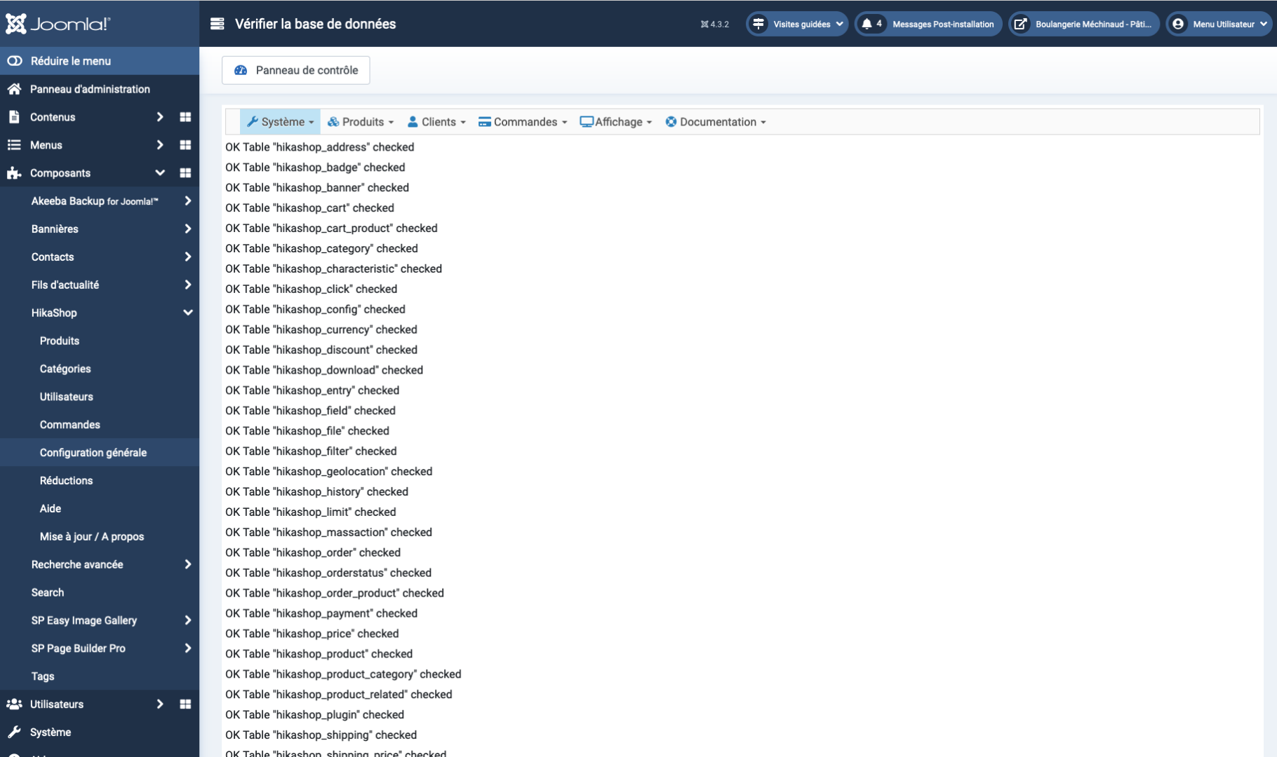 Aussi, un fois la migration des données de la base de données faite, je vous recommande de cliquer une fois sur le bouton "check database" de la configuration HikaShop pour que les utilisateurs sont bien synchronisés.