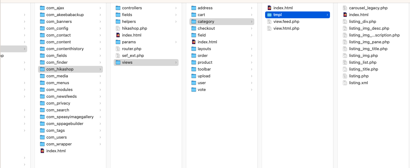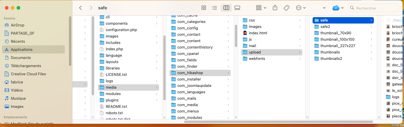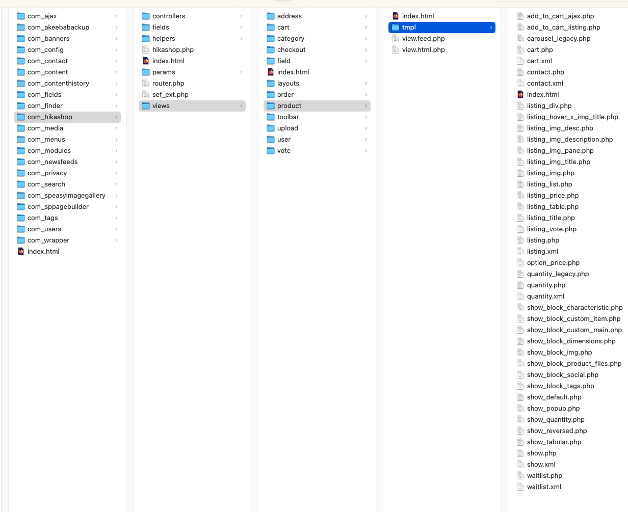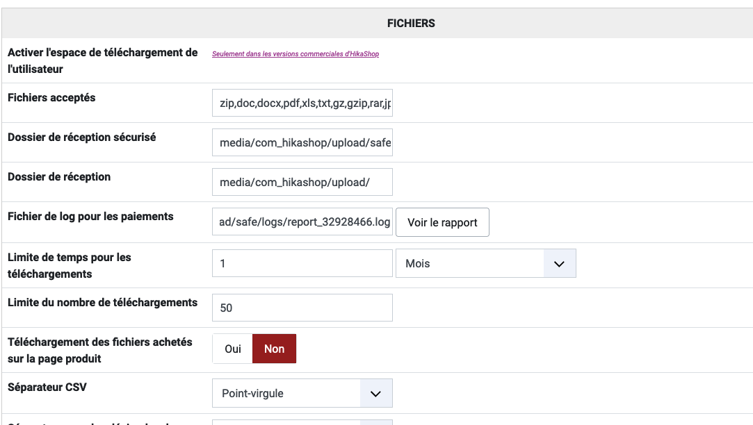 Enfin, il faudra copier les fichiers des dossiers images/com_hikashop/upload/ et media/com_hikashop/upload/ via FTP pour récupérer les images, les fichiers téléchargeables, etc.