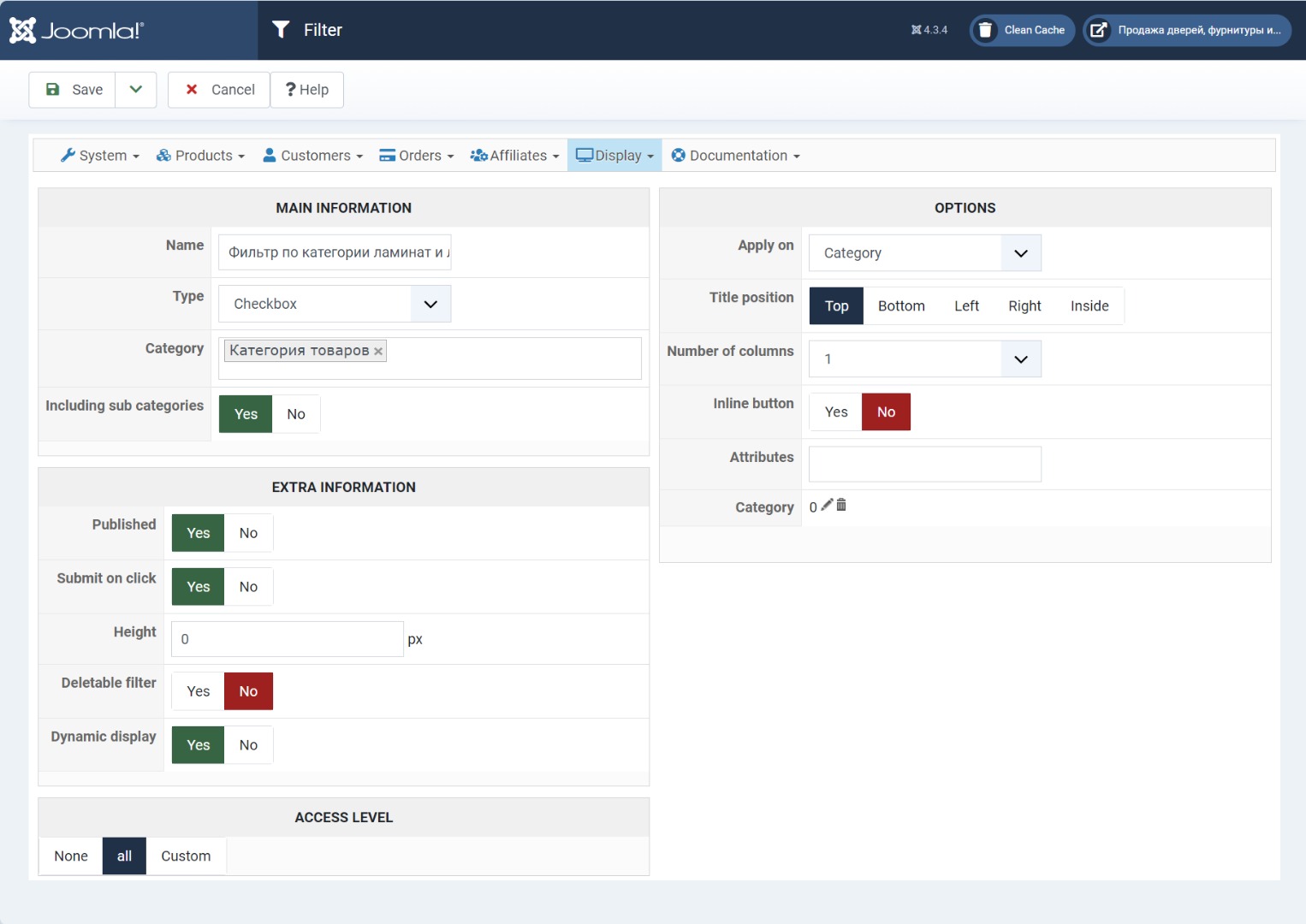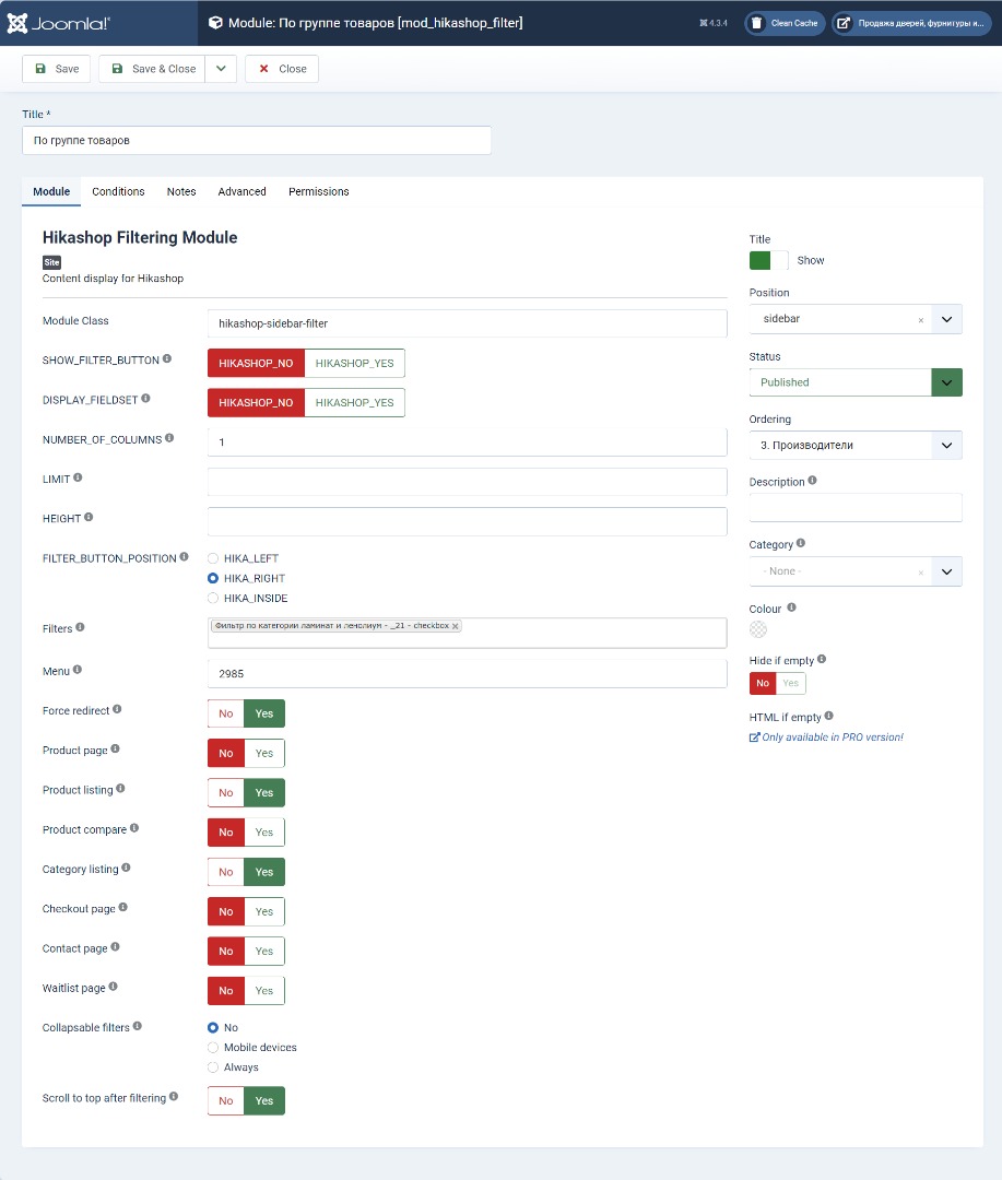Hi, I'm trying to set up a filter for the manufacturer. To be able to filter by product category for a specific manufacturer, I set up a filter, but for some reason it is not displayed. Could you please tell me what needs to be done to make it display correctly: