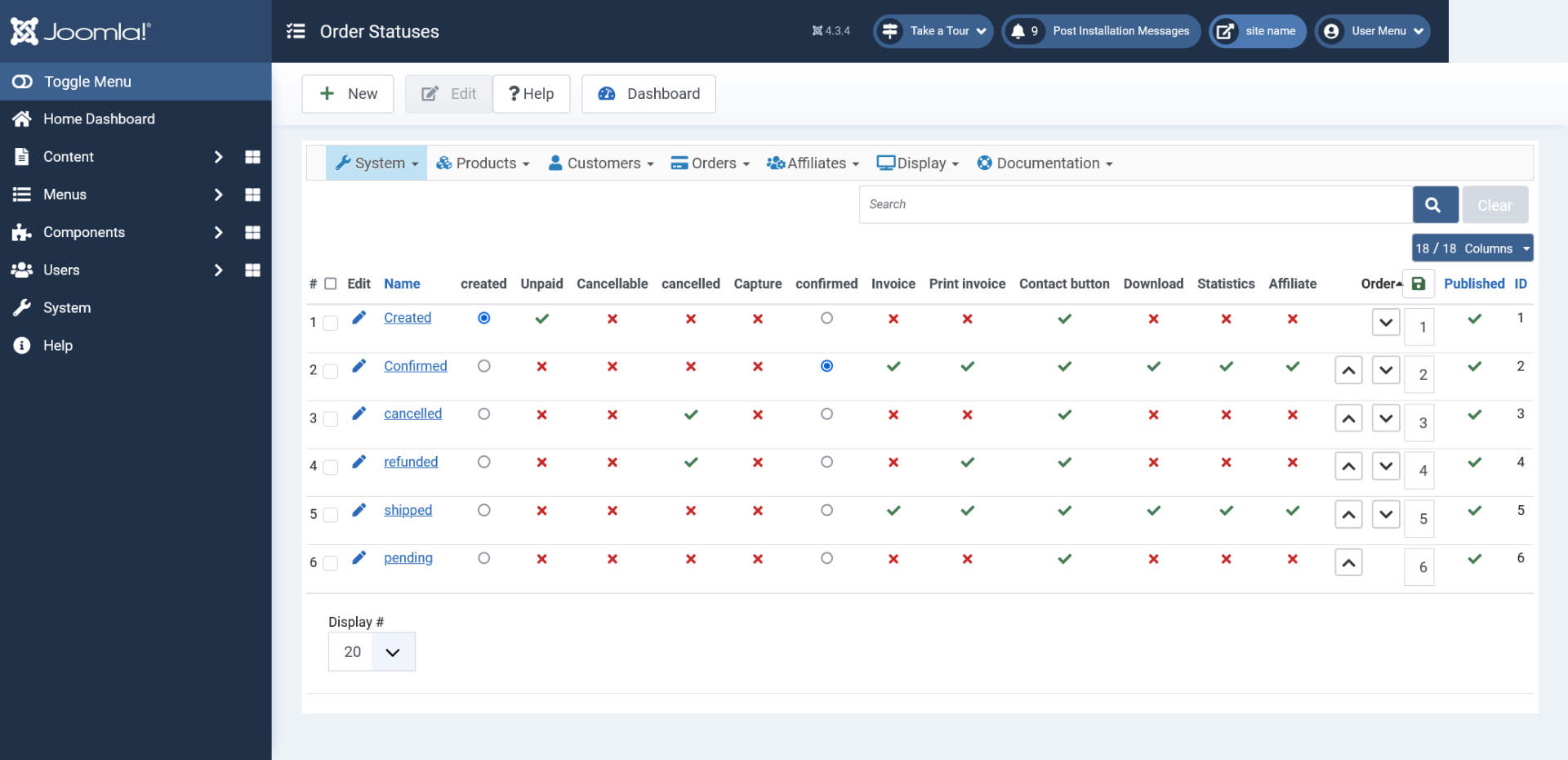 For HikaShop a "purchase is complete" when the status of an order goes from "created" to "confirmed". This is normally done by the payment plugin when it receives a payment notification by the payment gateway.