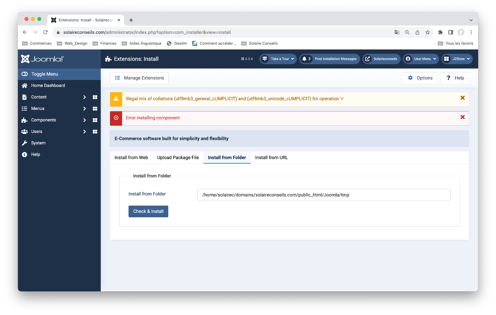So potentially, something or someone on your end changed the normal collation of the Joomla tables for some reason in the past, which led to this unexpected error message.