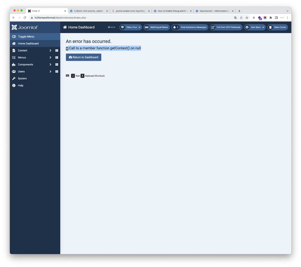 -- Error-message(debug-mod must be tuned on) -- : 0 Call to a member function getContext() on null