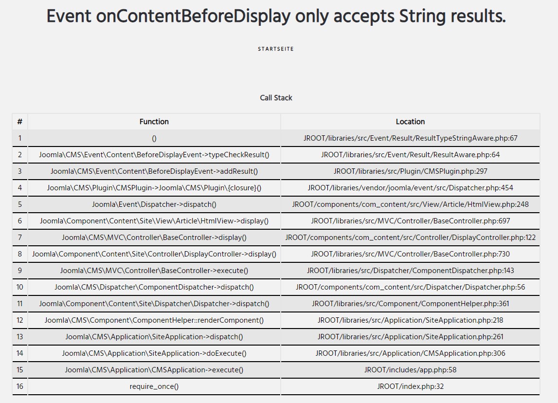 2 Joomla\CMS\Event\Content\BeforeDisplayEvent->typeCheckResult() JROOT/libraries/src/Event/Result/ResultAware.php:64