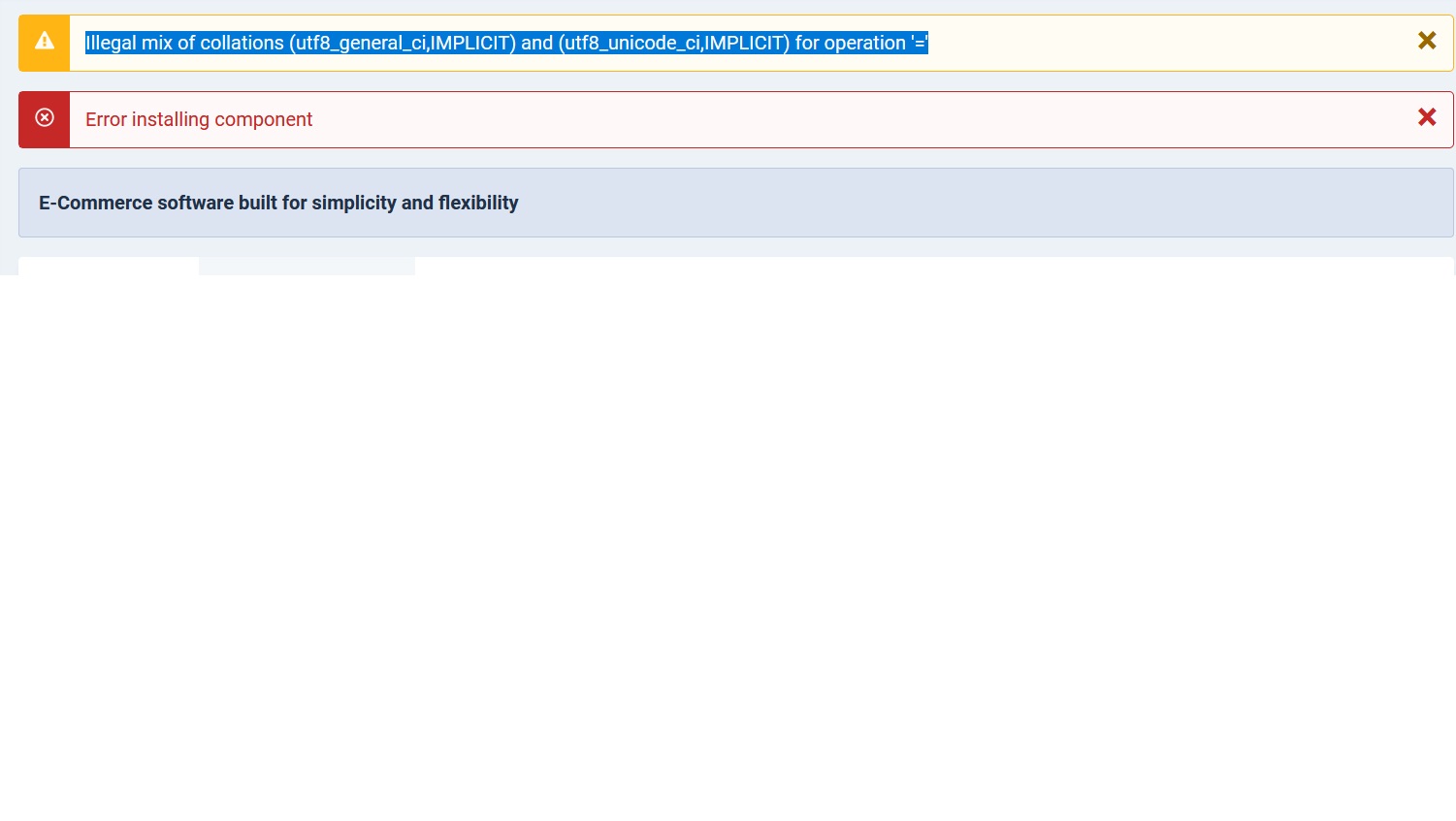 I tried to upgrade to HikaShop ver. 5.0.0 but I get this error "illegal mix of collations (utf8_general_ci,IMPLICIT) and (utf8_unicode_ci.IMPLICIT) for operation '='". then my website will become inaccessible. I have attached a