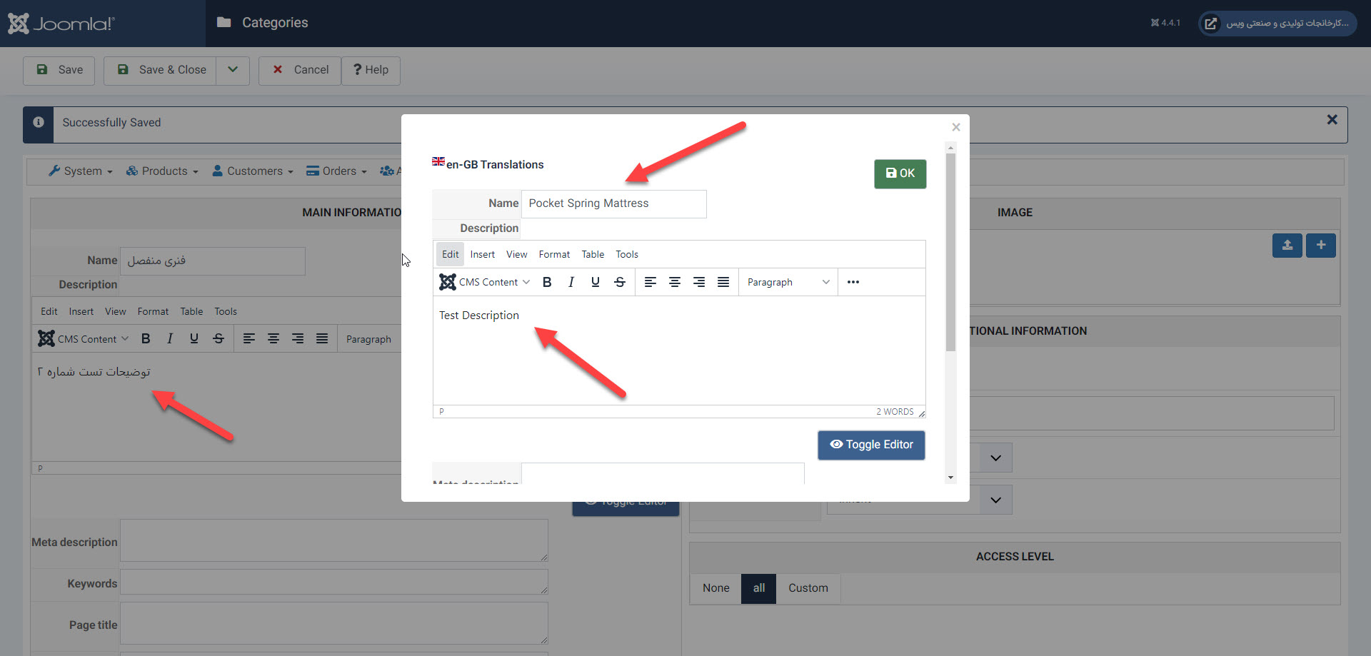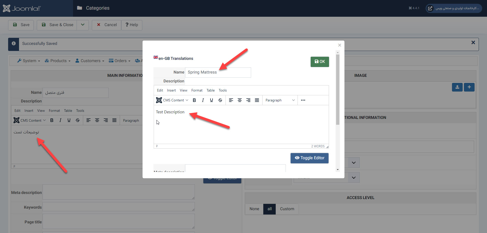 this is the first category i want to edit the description. please look at the category name "Spring Mattress"