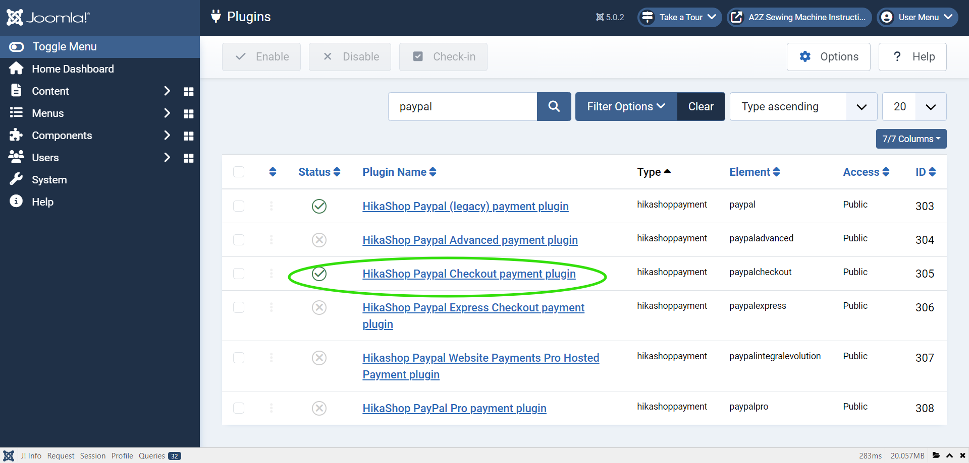 How do I get all the plugins to show up inside Hikashop administration.