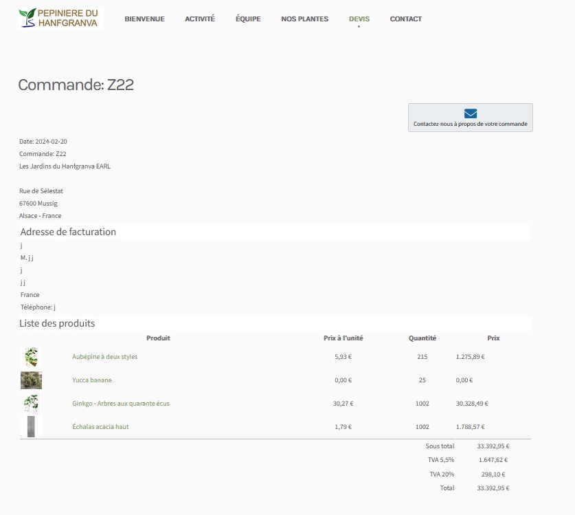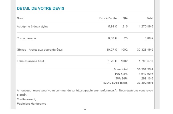 Cependant, une fois la commande finalisée, lorsque le client clique sur "Merci pour votre commande, vous pouvez la voir ICI", les taxes ne s'affichent plus.