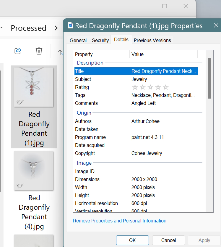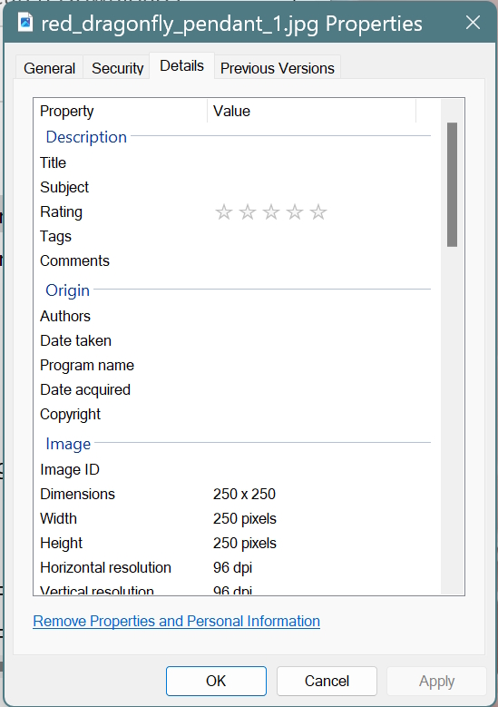 After dropping the image into the new Hikashop product and then downloading the image from the front end, the .jpg property details look like the attached image.