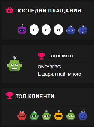 It says "last payments" "top client" and "top client"