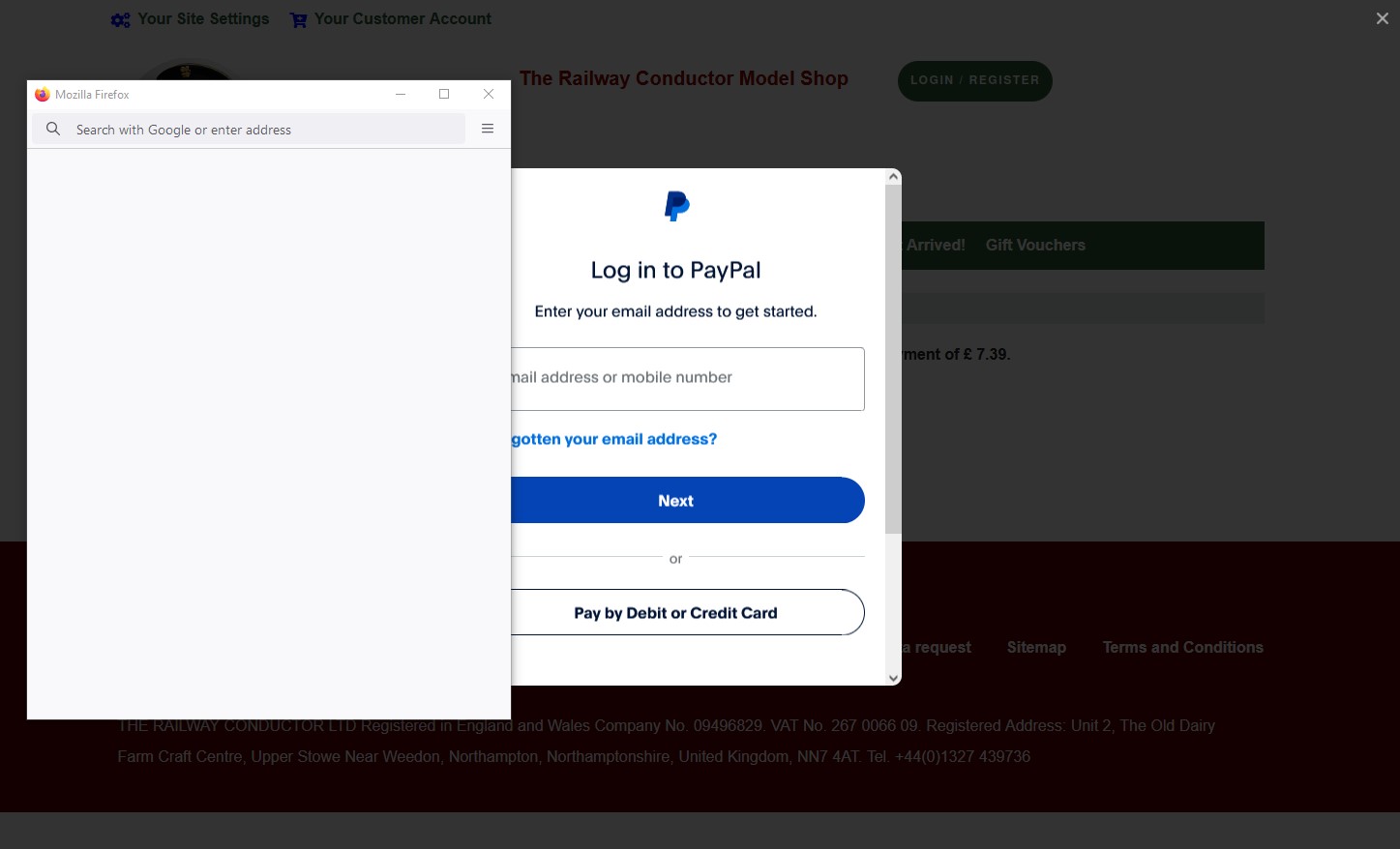 When the PayPal link is clicked it opens an empty pop-up window (labeled about:blank - Goggle Chrome), which covers the PayPal login form which has loaded and sits behind the empty window. Users do not realise and leave the website without paying. This occurs in both Chrome and Firefox. Screenshots attached, shot 2 is the window pulled to the side of the Paypal login screen.