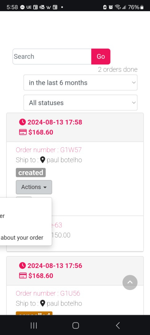 Hikashop user orders on mobile the action button is mostly off the side of page