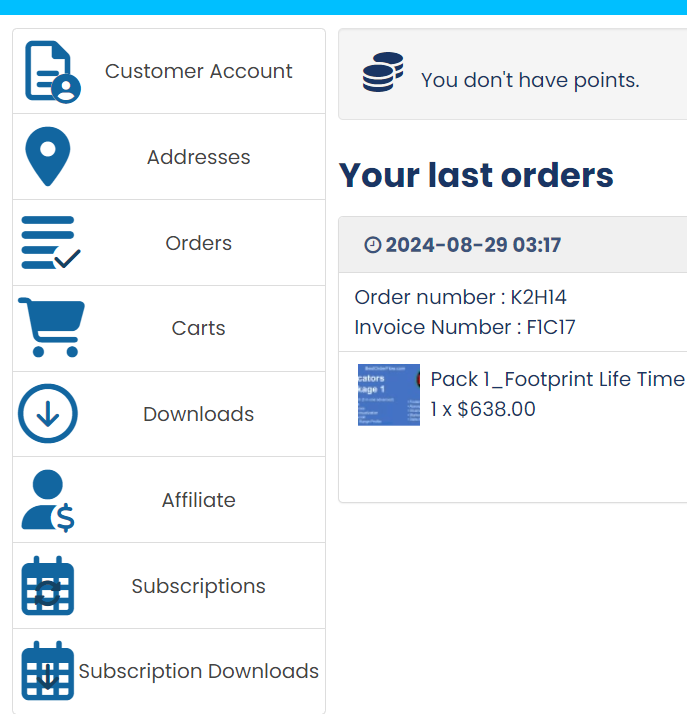 For example, if you want to remove the "customer account" item, you can turn off the "HikaShop joomla user account link plugin" via the Joomla plugins manager. Or if you want to disable the affiliate item, because you're not using the affiliate system built in HikaShop, you can disable the HikaShop Affiliate plugin.