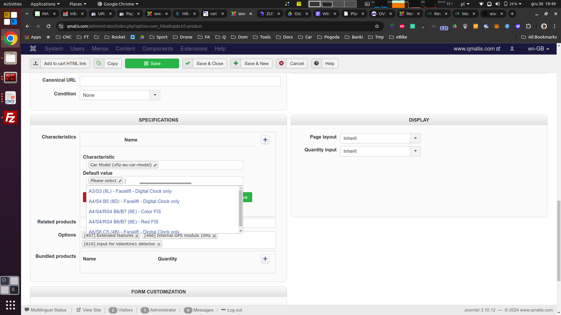 Now problem changed, independent of Characteristics dynamic display (default/No/Always)