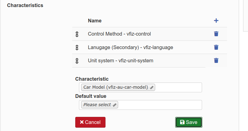 and when I'm adding characteristics for product I can't add one without default values - because Save button don't complete save.. button stays in pressed state and characteristics is not added do above list.