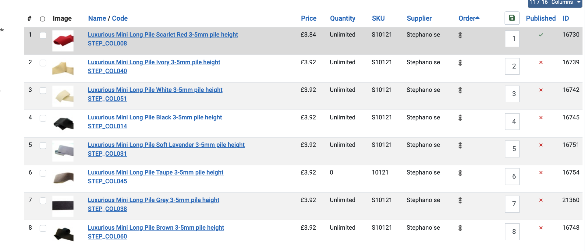 Set the filters on the top right corner to all sub categories, and to display only variants.