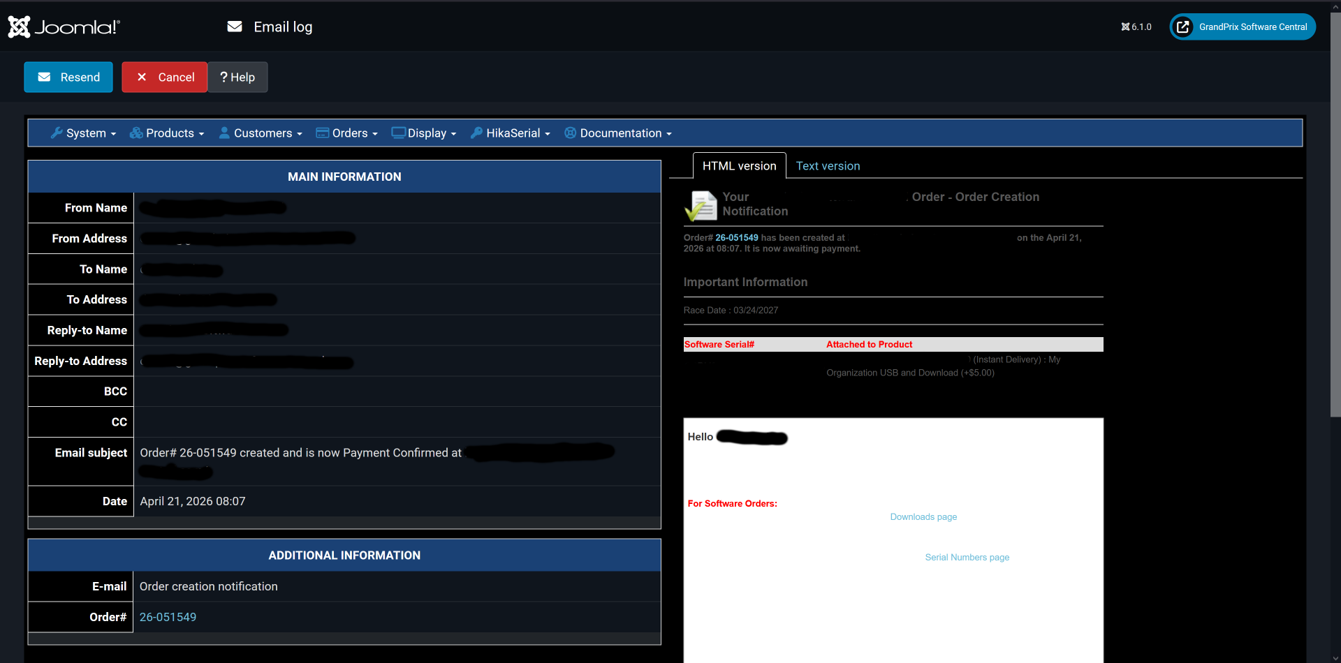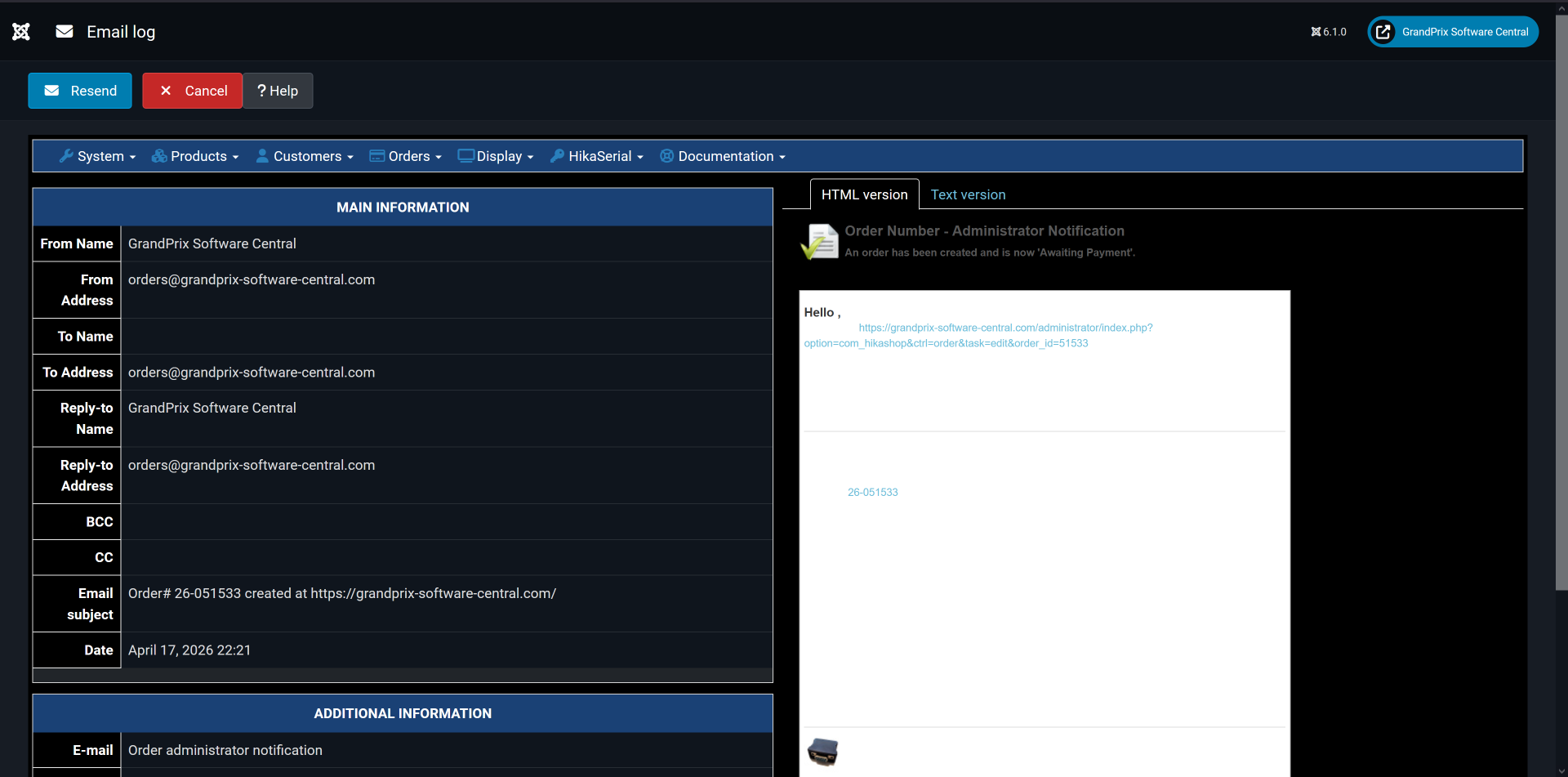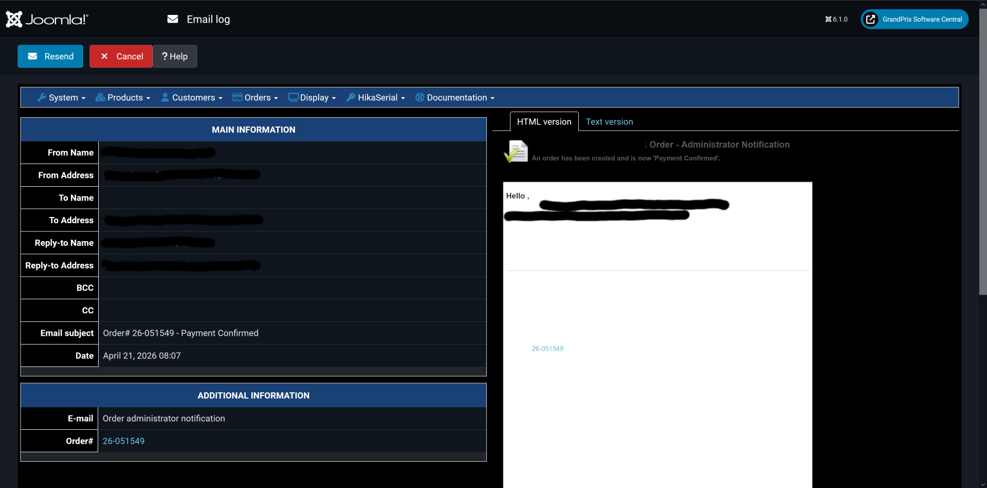 [Fri Apr 17 14:27:09.897114 2026] [:error] [pid 2121134:tid 140379192526592] [client ***:63232] [client ***] ModSecurity: Access denied with code 403 (phase 2). Pattern match "(?:\\\\bunion\\\\b.{1,100}?\\\\bselect\\\\b.{1,100}?php.{1,100}?(?:passthru|serialize|system|eval|create_function|create_function|preg_\\\\w+|exec|shell_exec ?(?:\\\\(|\\\\: ?'?))|select.{1,100}?(?:php|perl).{1,100}?into outfile|reg_replace ?\\\\()" at ARGS:data[mail][preload]. [file "/etc/httpd/modsecurity.d/modsec/10_asl_rules.conf"] [line "279"] [id "380025"] [rev "7"] [msg "Atomicorp.com WAF Rules: SQL injection with PHP/PERL payload"] [data "reg_replace("] [severity "CRITICAL"] [tag "SQLi"] [tag "RCE"] [hostname "***.com"] [uri "/administrator/index.php"] [unique_id "***"], referer: https://***/administrator/index.php?option=com_hikashop&ctrl=email&task=edit&mail_name=payment_notification