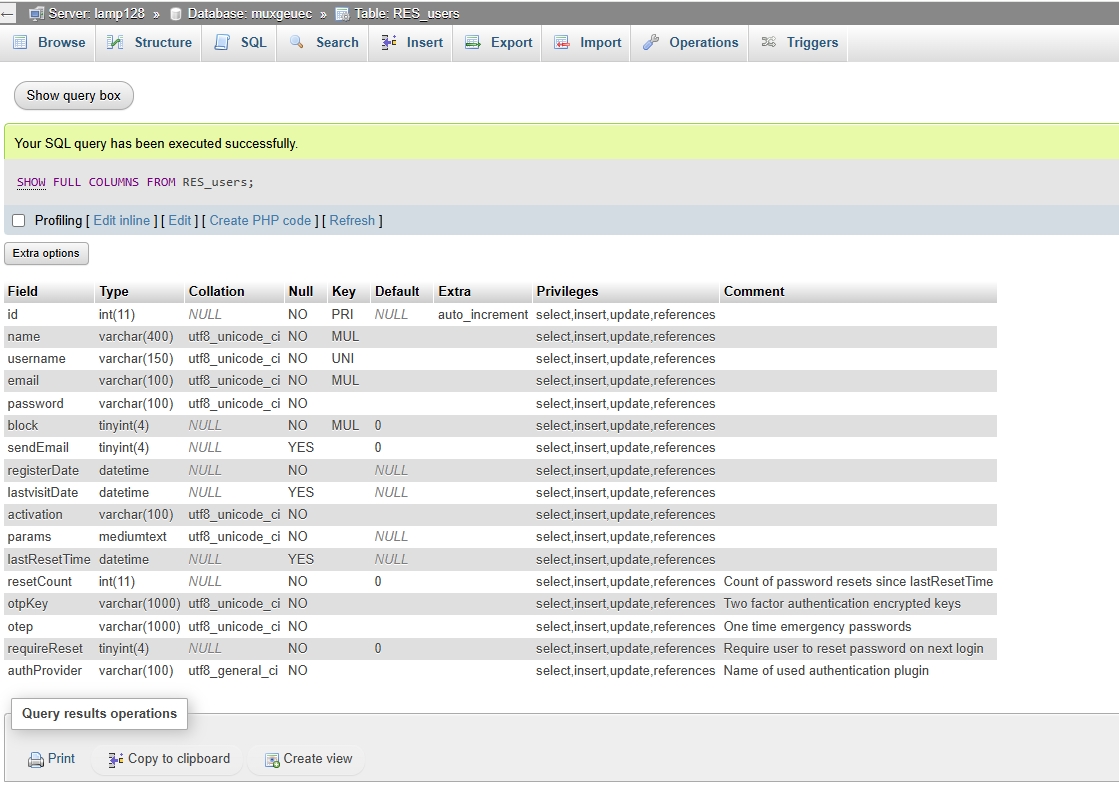 Normallement, elle devrait avoir la même collation. Cependant, lorsqu'un site joomla est ancien, il est possible que la colonne email de la table users ait une autre collation et cela peut causer ce problème.