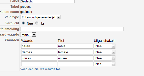 The value which will be added in the XML is the "Waarde" and not the "Titel". So it is possible that google product does not understand "heren" in the xml ; it might prefer "male".