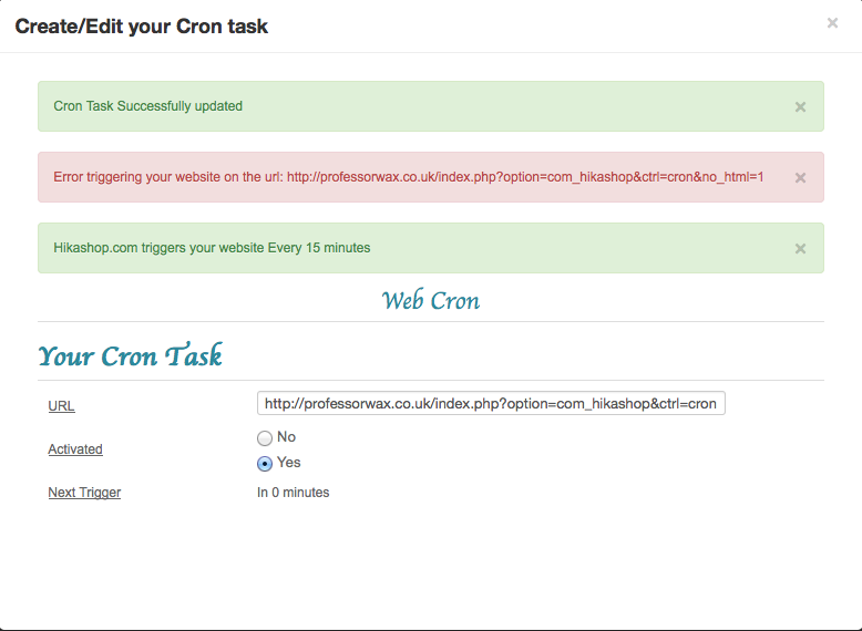 -- Error-message(debug-mod must be tuned on) -- : Unable to trigger cron
