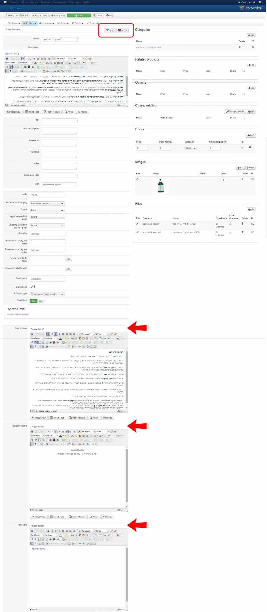 3. Any suggestion regarding this -> BTW, is there an option to add the flags of translation to the custom fields in Hikashop just like in the product description so my client could edit the translations directly from the product?