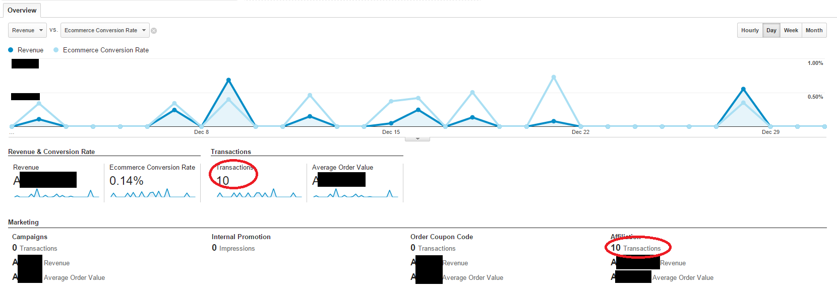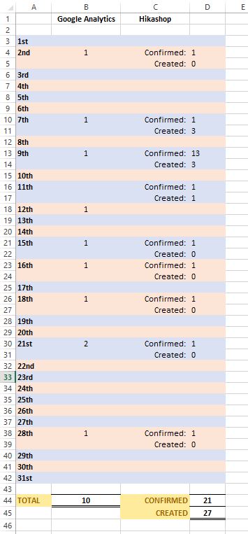Can you see specific orders on specific days which are not included in Google Analytics ?