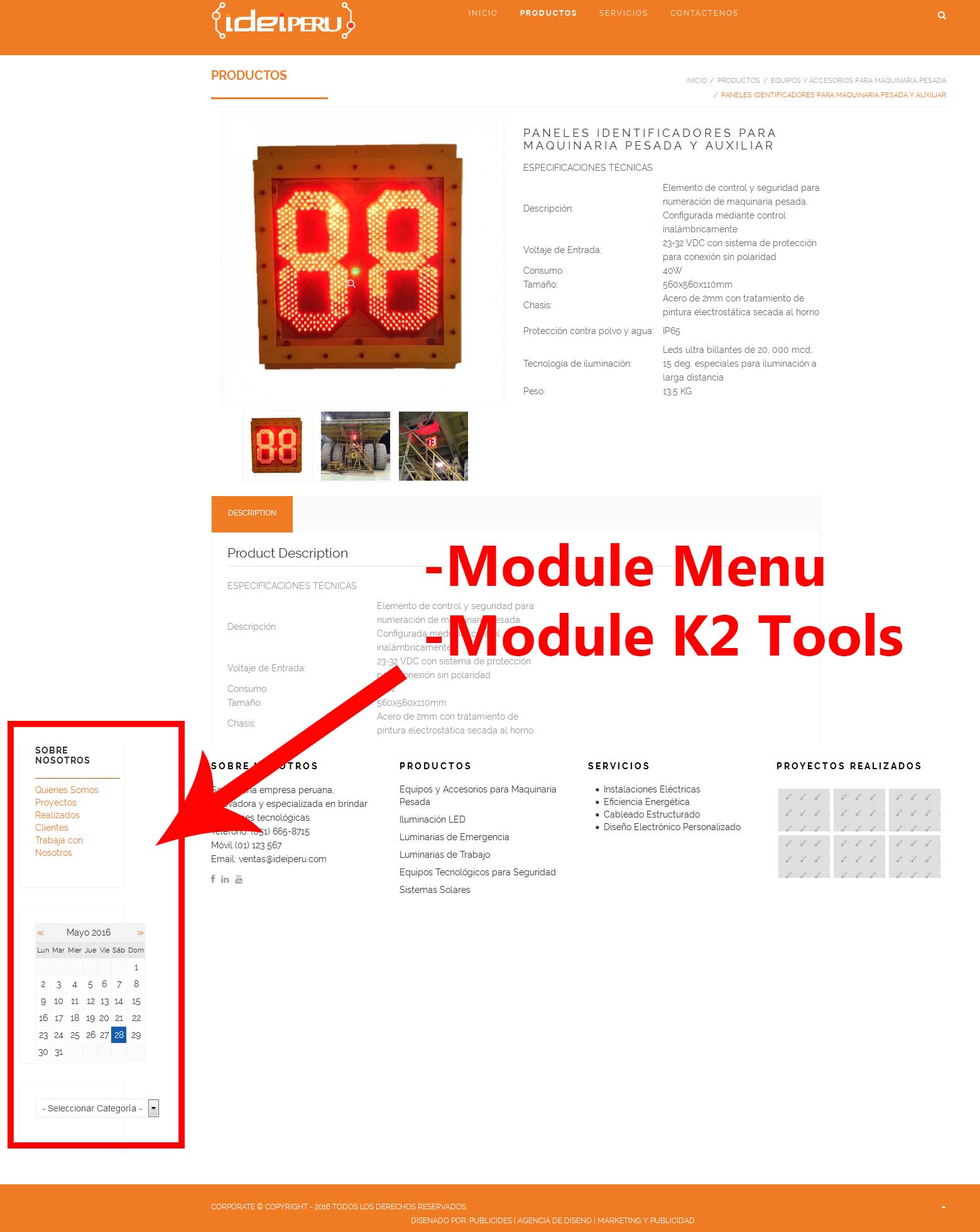 - Module menu, list of categories and K2 Module Tools