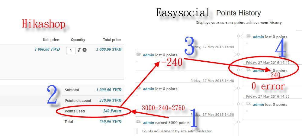 If yes, perhaps you can help us consult with `Hikashop` developer how it actually work once the payment is done, so the point will update it on Easysocial database table?