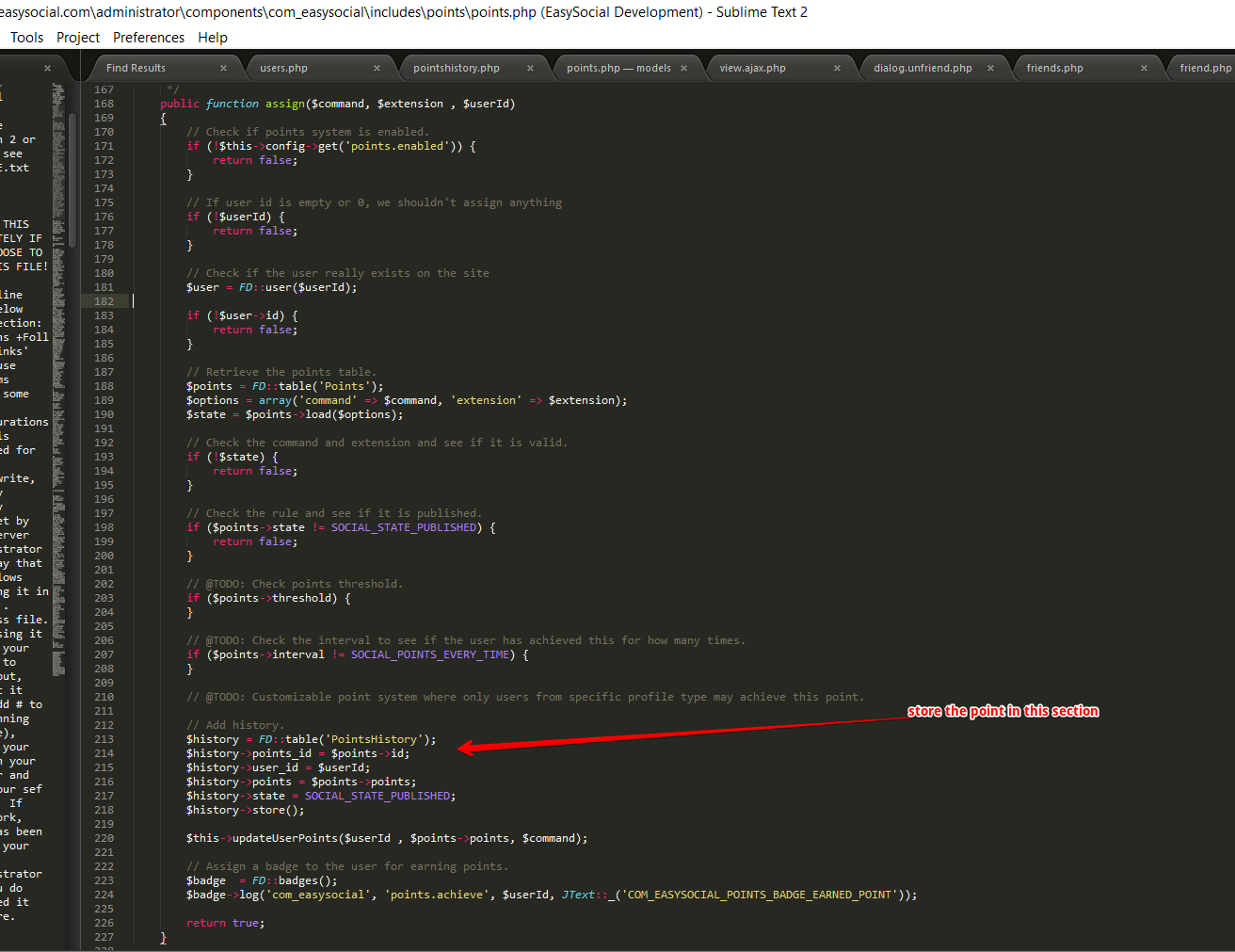By the way, how the Easysocial minus point work is, we already have the assign function for store the point value in the database, the system will combine all the user existing point data from the database which point contain negative one then calculate it, then it will show the total point in user profile page.