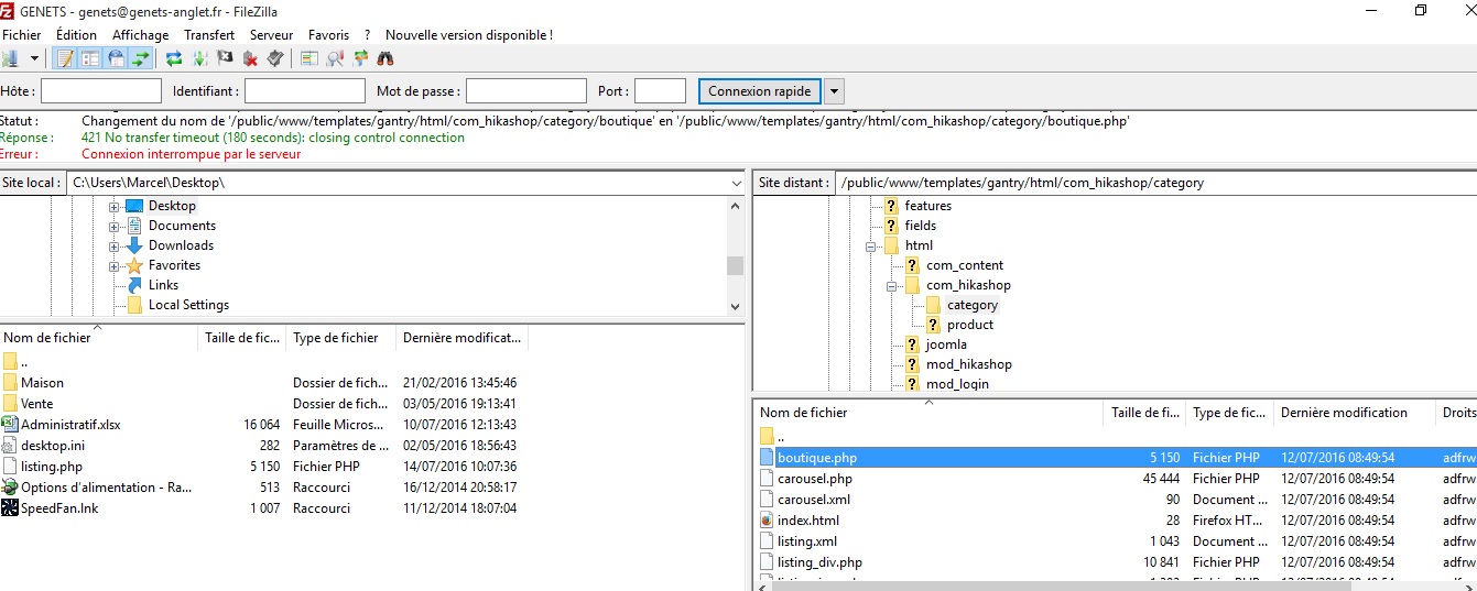 J'ai fait ce que vous m'avez indiqué j'ai renommé le fichier "listing.php" en "boutique.php" .... et ca ne fonctionne toujours pas.