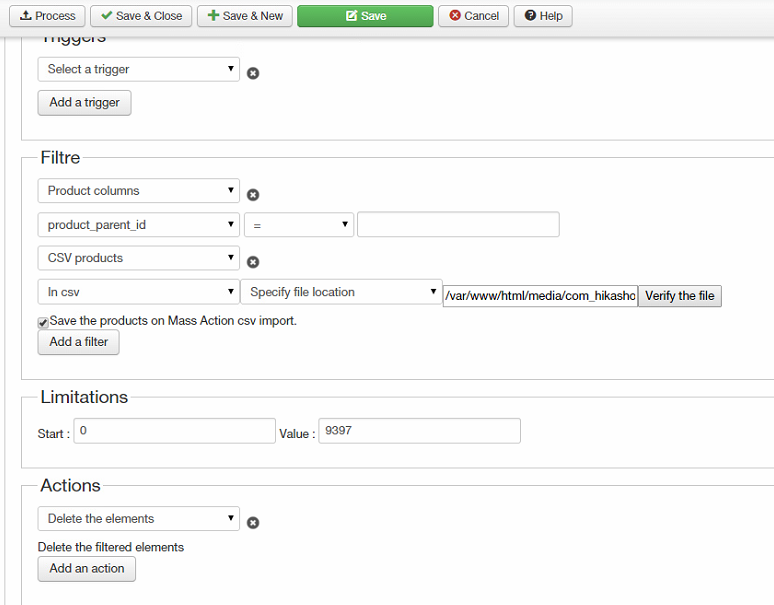 Please help me sort this out - it is really getting on my nerves, it should be something easy to do and I just can't get passed it. I left the actions there, the one set up to delete the products is named ID-to-delete.