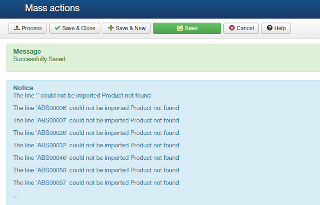 I changed the mass action filter to not delete but to show the results. It gives the same error but it also gives me a table below. I attached for this display-products.png