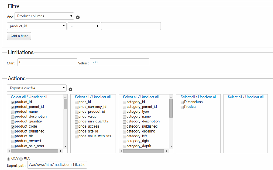 I created another mass-action, to check the correct product_parent_id. You can see the filter attached: export-products.png